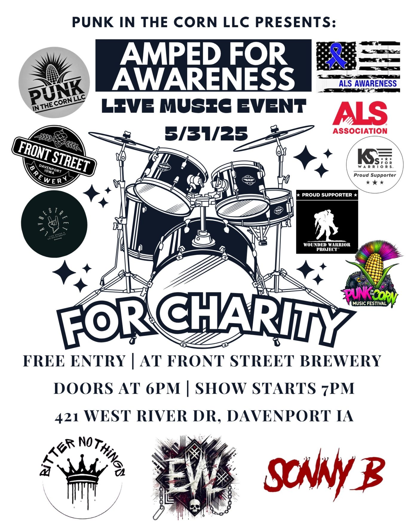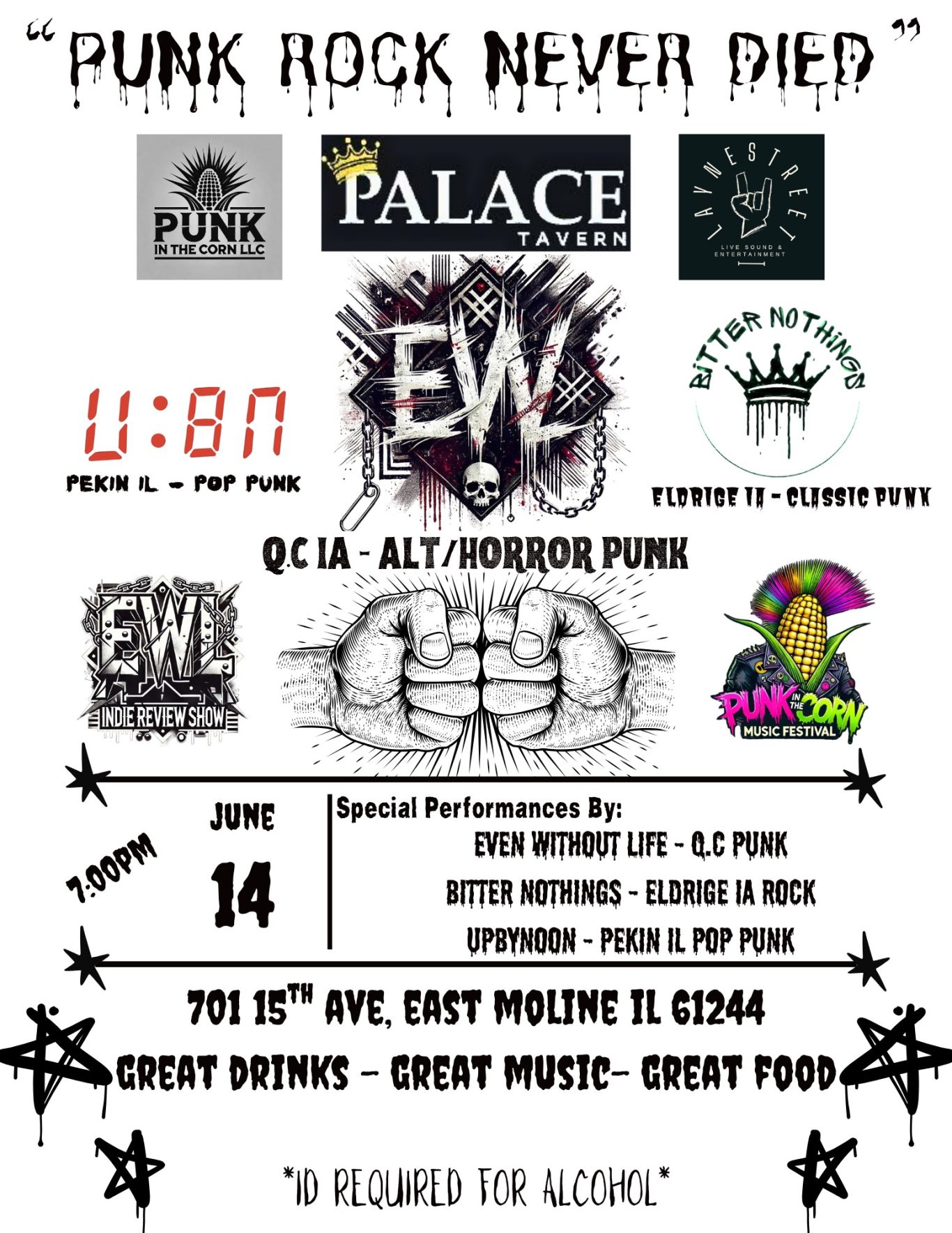 Punk, proto punk, hard rock, psych rock and alt punk all collide for one wild night at Front Street Brewery in Davenport, Iowa. Bands from Texas, Chicago, Peoria, Pittsburgh and the Quad Cities roll in to shake the walls and tear up the stage.